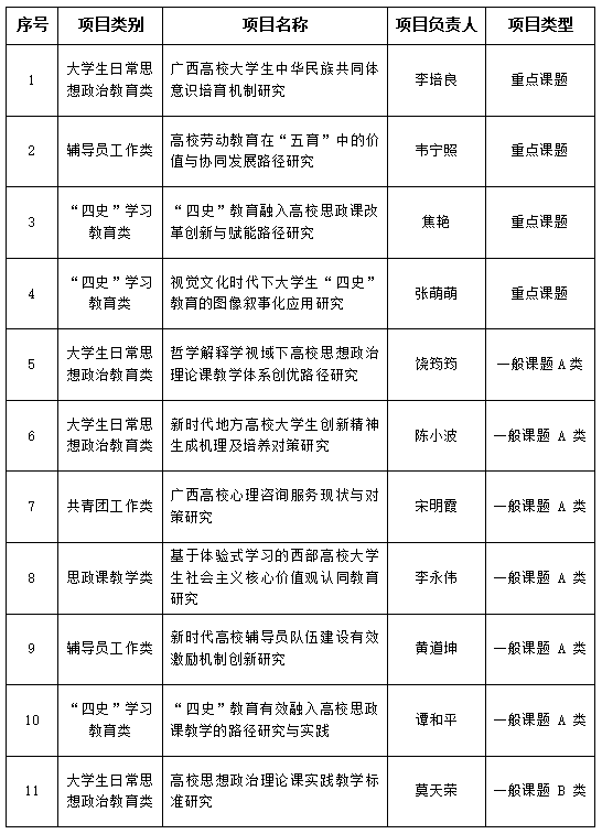 beat365获批2021年广西高校大学生思想政治教育理论与实践立项研究课题一览表
