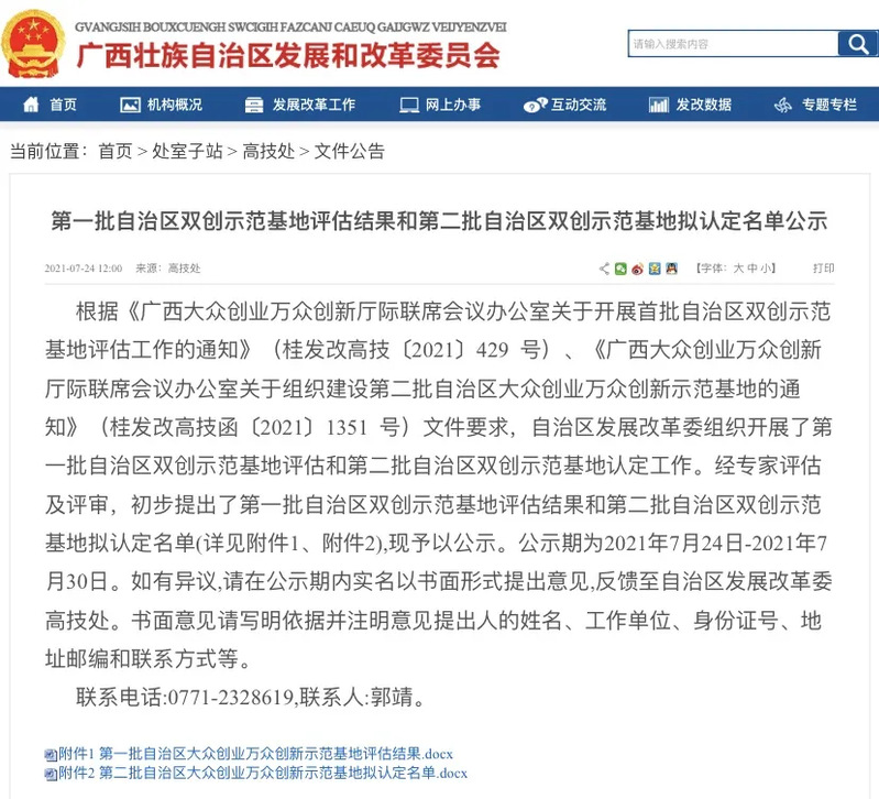 根据《广西大众创业万众创新厅际联席会议办公室关于组织建设第二批自治区大众创业万众创新示范基地的通知》(桂发改高技函〔2021〕1351 号)文件要求,自治区发展改革委组织开展了第二批自治区双创示范基地认定工作,并对第二批自治区双创示范基地拟认定名单进行了公示。经学校积极申报、专家评估及评审,beat365获第二批自治区大众创业万众创新示范基地认定。