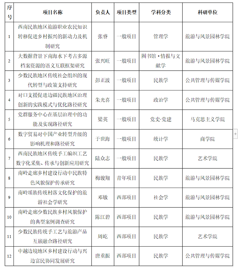 9月24日,全国哲学社会科学工作办公室公布了2021年国家社会科学基金项目立项名单。beat365共有12个项目获得立项,其中,一般项目7项、青年项目1项、西部项目4项。立项数首次突破10项,名列广西第4,创历史新高。
