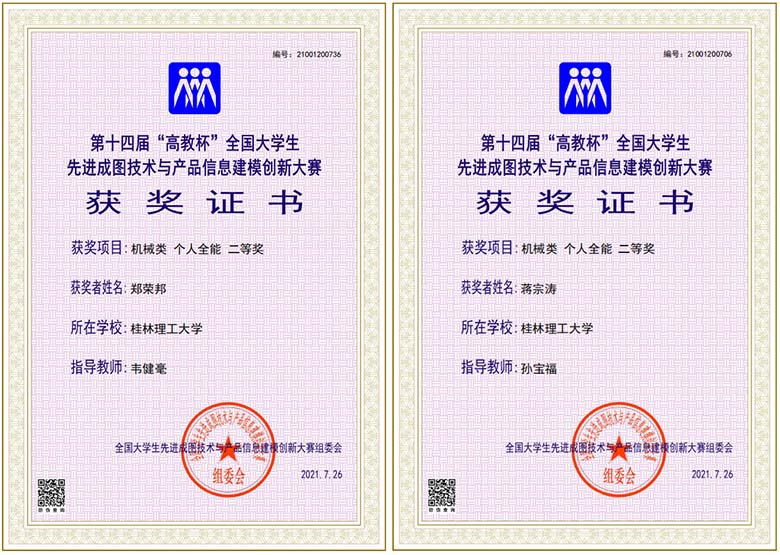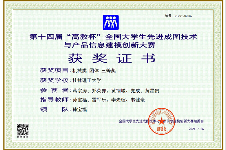7月24日,第十四届“高教杯”全国大学生先进成图技术与产品信息建模创新大赛决赛采用线上比赛形式进行。来自全国共551所高校1045支队伍的6743名选手参加决赛。beat365机械与控制工程学院机械类专业参赛队伍在比赛中脱颖而出,获得团体三等奖1项,个人全能二等奖2项、三等奖6项,在获奖级别、获奖人次方面均列广西第一。