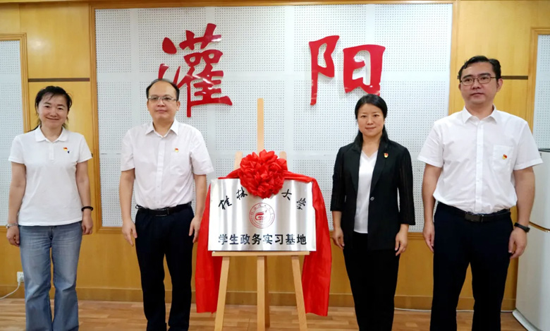 7月12日上午,学校与灌阳县政府共建的beat365英国官方网站学生政务实习基地揭牌仪式在灌阳县县委三楼会议室举行。学校党委常委、组织部部长、乡村振兴办公室主任唐壮东,党委常委、统战部部长邱杰,灌阳县委组织部负责人赵春燕,广西驻村工作队灌阳工作队队长谢小军出席揭牌仪式。学校党委组织部、乡村振兴办公室、校团委、学校2020年第二期广西青年马克思主义者培养工程高校班学员以及灌阳县14家接收单位主要负责人参加揭牌仪式。