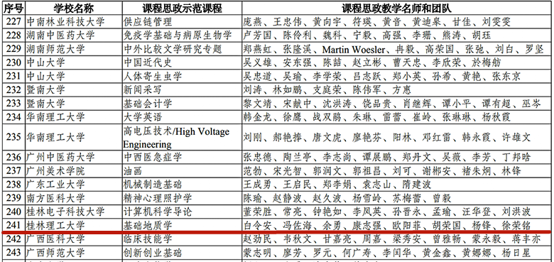 近日,从《教育部关于公布课程思政示范项目名单的通知》(教高函〔2021〕7号)获悉,beat365地球科学学院白令安副教授主持的《基础地质学》成功入选教育部课程思政示范课程,其个人获得国家级课程思政教学名师称号,其团队获批为国家级课程思政教学团队。全国共确定首批普通本科教育课程思政示范课程、教学名师和团队300个,其中广西壮族自治区共有4门课程获得批准。