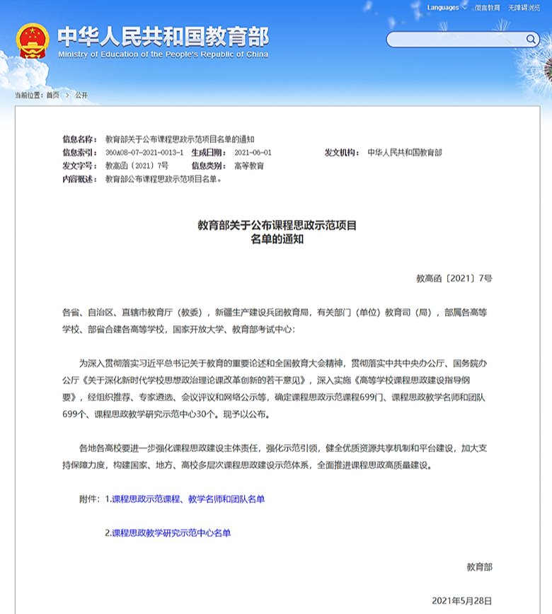 近年来,学校以习近平新时代中国特色社会主义思想为指导,全面贯彻党的教育方针,坚持社会主义办学方向,对本科教育教学改革高度重视,通过设立校院两级课程思政研究中心,系统推进人才培养方案与课程教学大纲修订,开展校级课程思政示范课立项建设,组织课程思政说课比赛等,实现课程思政全覆盖,对促进思政教学资源与人才培养各环节的有机融合、保障人才培养质量的不断提升具有重要意义。