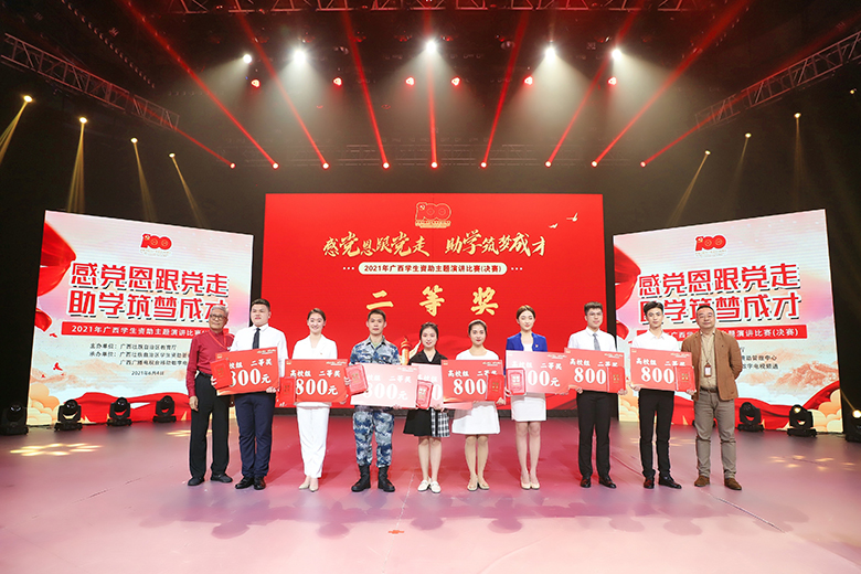 本次全区学生资助主题演讲比赛总决赛由自治区教育厅主办,自治区学生资助管理中心、广西广播电视台共同承办,以“感党恩跟党走,助学筑梦成才”为主题,旨在培育受助学生的爱党爱国情感和感恩意识,展现家庭经济困难学生在国家资助政策的支持下,爱党爱国、不畏困难、积极进取、奋发学习、自立自强的精神面貌。
