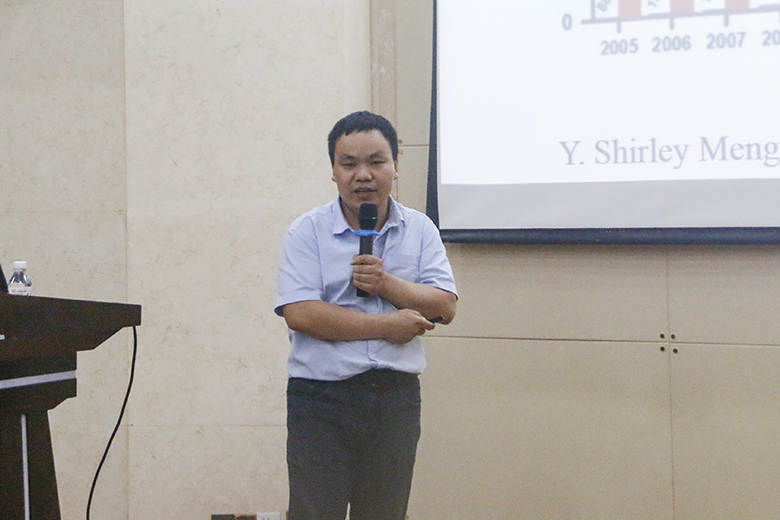 彭栋梁教授围绕锂离子电池电极材料的设计、可控制备与储能机制开展研究工作所取得的成果进行了详细的报告。彭教授课题组研究发现,高容量的富锂锰基正极搭配硅基、锂金属等新型高比能负极可提升锂电子储能密度;通过采取形貌调控、成分设计、缺陷构筑等不同策略,可显著改善富锂锰基材料存在的首次库仑效率低、倍率性能差以及容量和电压衰减严重等问题;通过各种缺陷间内在联系的理论研究,探索协同提升正极材料的电化学性能及其规模化应用的有效方案取得可喜进展。瞿佰华博士结合近年在可控制备硫化物及石墨烯基二维复合材料、构筑硫化物三维碳基体复合结构及表面调控的应用所开展的研究工作,分享了在从事科研工作中的心得体会,瞿佰华博士强调科研工作必须要始终保持严谨的科学研究态度、具备勇于探索的精神,要勤于思考、善于交流,还要有耐心、有毅力。