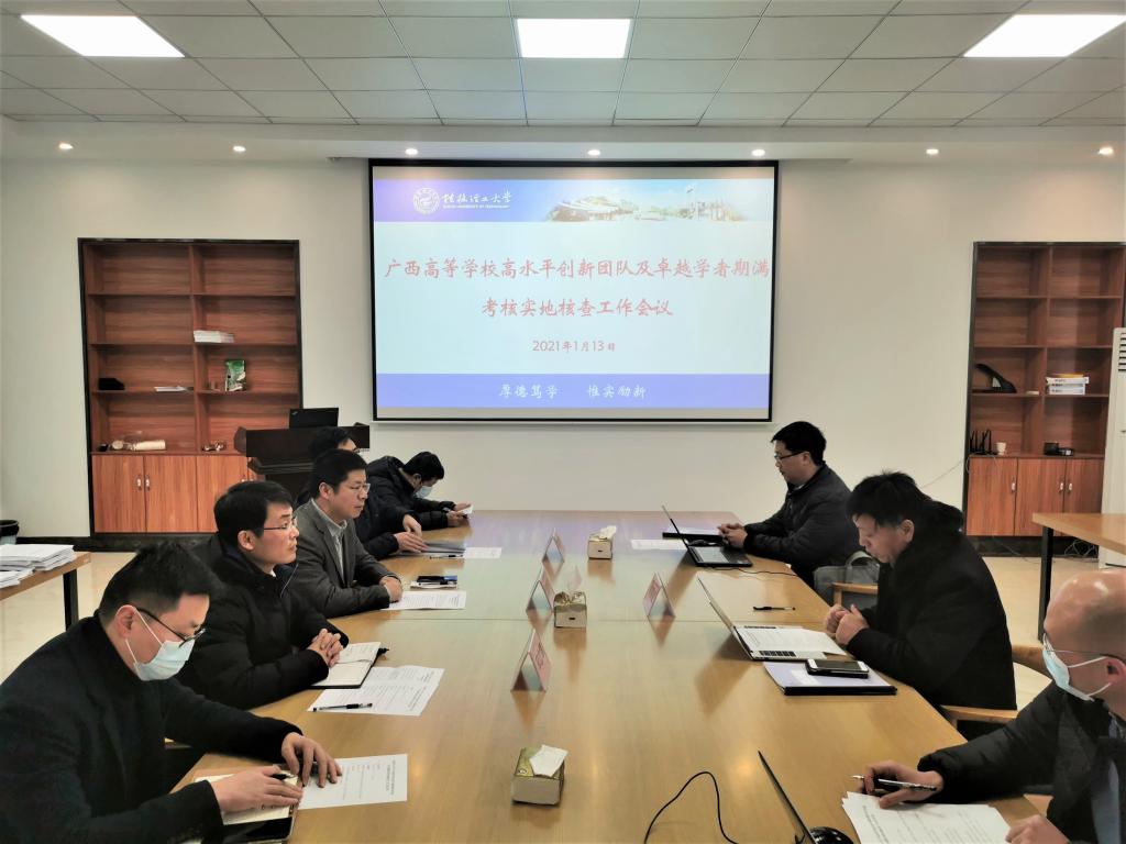 1月13日下午,自治区教育厅专家组一行3人莅临beat365屏风校区开展广西高等学校高水平创新团队及卓越学者考核实地核查工作。本次核查对象为李建平教授、王磊教授和刘杰教授三位卓越学者以及他们所在的三个广西高等学校高水平创新团队。核查工作会议在beat365屏风校区1301会议室召开。beat365副校长邓国彬出席会议。受核查的卓越学者及创新团队骨干成员、学校人事处(人才办)、财务处等单位相关负责同志参加会议。