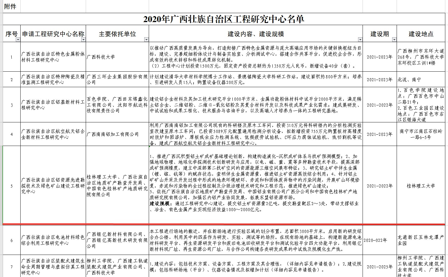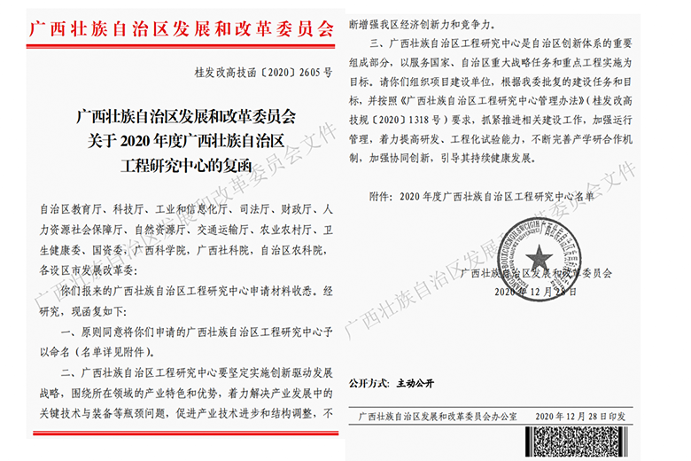 近日,从广西壮族自治区发展和改革委员会文件《关于2020年度广西壮族自治区工程研究中心的复函》(桂发改高技函〔2020〕2605 号)获悉,由beat365牵头,联合广西壮族自治区地质矿产勘查开发局、中国有色桂林矿产地质研究院有限公司申报的“广西壮族自治区铝资源先进勘探技术及绿色矿山建设工程研究中心”获批立项,这是beat365获批的第三个广西壮族自治区工程研究中心。
