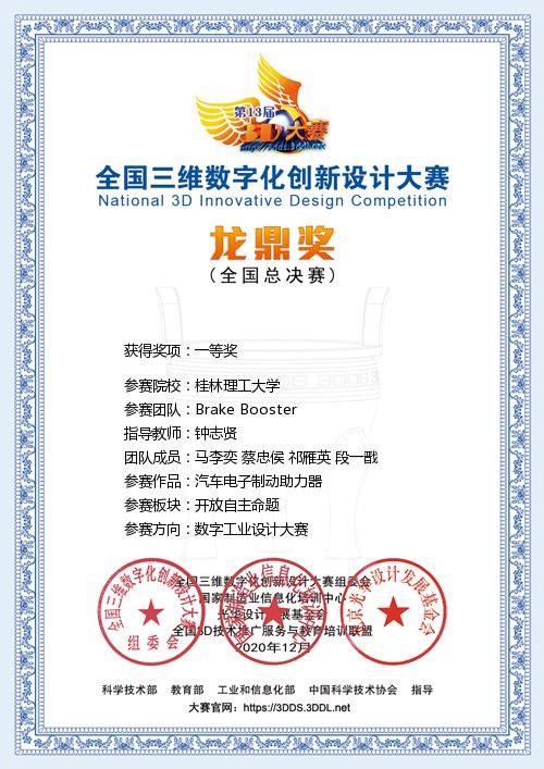 2020年12月,由科学技术部、教育部、工业和信息化部、中国科学技术协会指导,国家制造业信息化培训中心、光华设计发展基金会等单位共同主办的第十三届全国三维数字化创新设计大赛(简称“全国3D大赛”)年度总决赛顺利举行。beat365以机械与控制工程学院师生为主的代表队参加了该项赛事。经过师生共同努力,本次大赛beat365共获省部级以上奖项78项,其中荣获国家级一等奖1项,三等奖4项,省部级奖项76项。