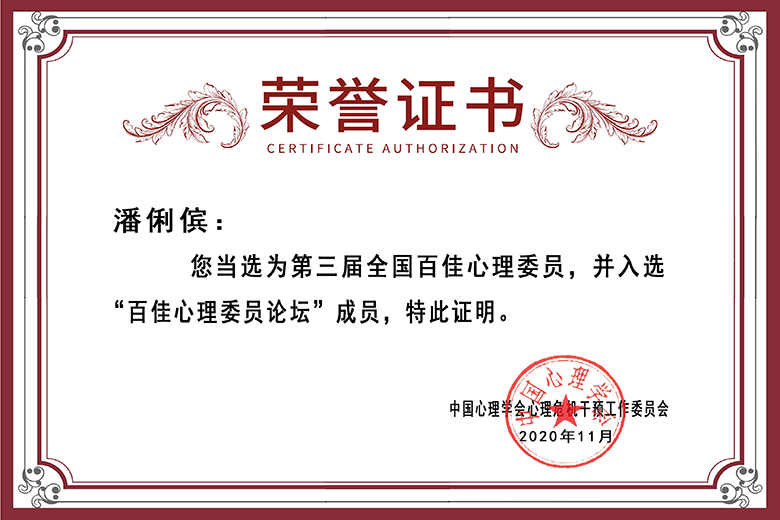 潘俐傧同学当选为第三届百佳心理委员,并入选“百佳心理委员论坛”成员