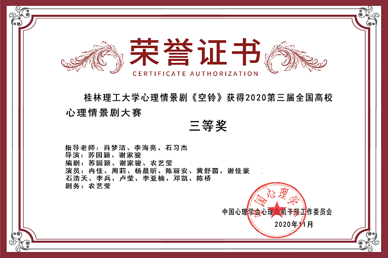 《空铃》获2020年第三届全国高校心理情景剧大赛三等奖
