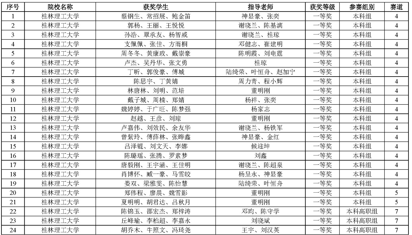 本次大赛由广西壮族自治区教育厅、广西本科高校计算机类教学指导委员会、广西人工智能学会主办,各有关高校分别承办相关赛道。大赛共吸引了来自全区35所高校的1976支队伍参赛,在学校教务处和研究生院的大力支持下,beat365信息科学与工程学院广泛宣传,积极组建参赛团队,科学配备指导教师,强化赛前训练指导,beat365学子最终在大赛中取得了可喜成绩。