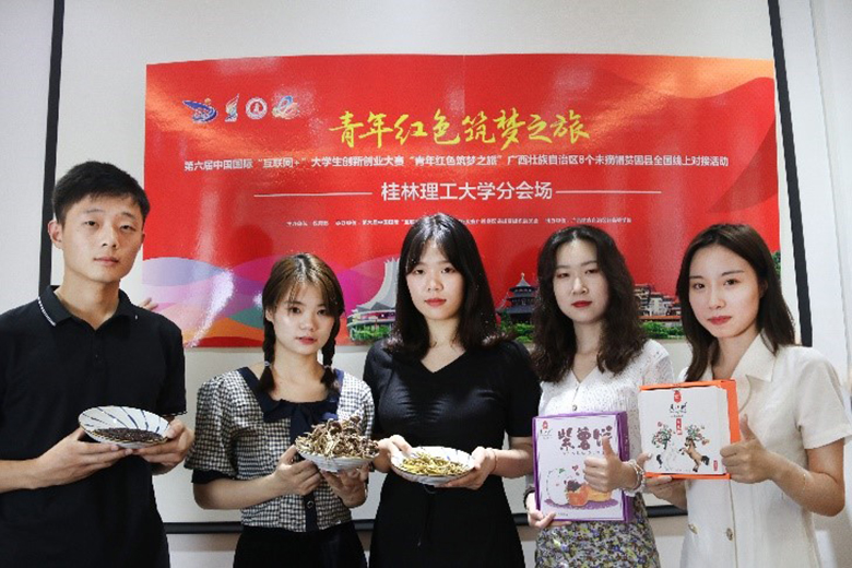 学校积极响应教育部和自治区教育厅关于脱贫攻坚工作部署,深入贯彻落实习近平总书记给中国“互联网+”大学生创新创业大赛“青年红色筑梦之旅”大学生的重要回信精神,科学制定活动方案,组织大学生创新创业团队组建“青年红色筑梦之旅”电商直播团队,通过线上直播平台开展《大学生乡村网红代言人》专场直播活动 80 余场,37名大学生开展公益直播,为百色隆林芒果、柳州三江夏橙、河池都安龙眼等广西8个贫困县的农产品及其加工品进行带货,直播间观看人数场均900人左右,总点赞320万+,累计销售额达9.62万元。