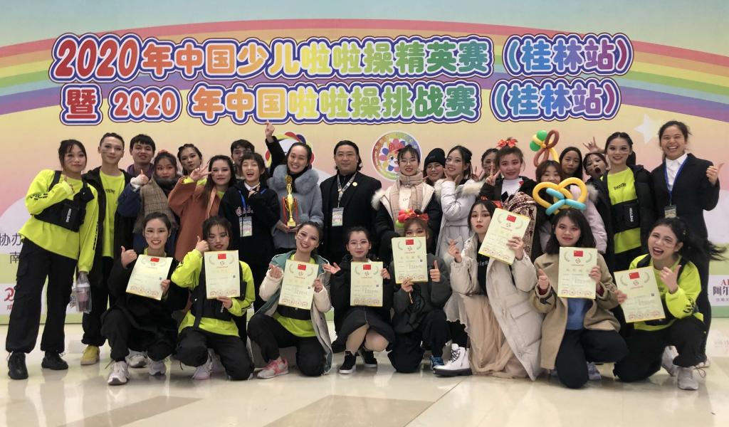 12月4日至6日,由国家体育总局体操运动管理中心主办,全国啦啦操委员会、桂林市教育局、桂林市体育局承办的2020年中国少儿啦啦操精英赛(桂林站)暨2020年中国啦啦操挑战赛(桂林站)在桂林市国贸益华城举行。经过激烈的角逐,beat365大学生艺术团啦啦操队荣获公开青年丙组花球校园啦啦操示范套路(第三套)冠军和公开青年丙组集体街舞自选动作亚军。
