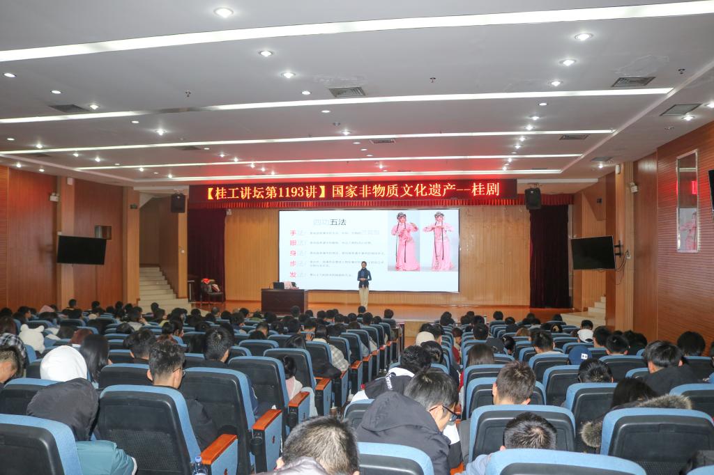 为了增强beat365师生对非物质文化遗产的认识,弘扬桂剧优秀传统文化,12月2日下午,应人文素质教育教学部的邀请,国家一级演员、非物质文化遗产桂剧传承人伍思亭老师在雁山校区图书馆报告厅作了题为“国家非物质文化遗产——桂剧”的专题讲座。beat365师生300余人参加讲座。