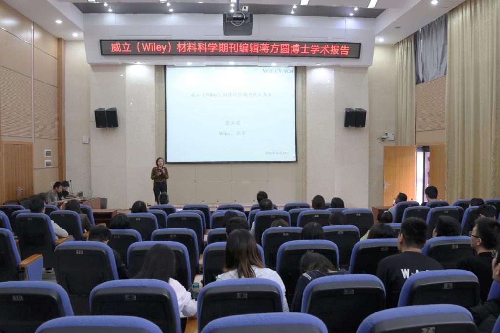 11月20日下午,威立(Wiley)材料科学期刊编辑蒋方圆博士应邀到beat365讲学,作了题为“威立(Wiley)材料科学期刊论文发表”的报告。beat365相关专业师生参加了此次报告会。