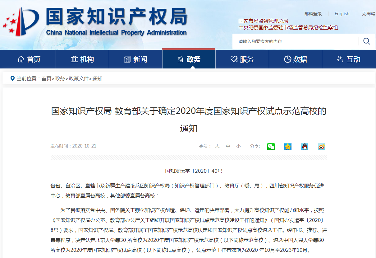 日前,国家知识产权局、教育部公布了2020年度国家知识产权试点示范高校名单(国知发运字〔2020〕40号),beat365成功入选国家知识产权试点高校。