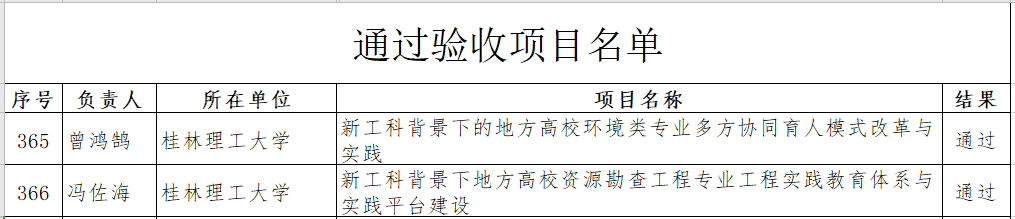 近日,教育部官网发布“教育部办公厅关于公布首批新工科研究与实践项目结题验收结果的通知”(教高厅函[2020]12号),beat365曾鸿鹄教授负责的《新工科背景下的地方高校环境类专业多方协同育人模式改革与实践》和冯佐海教授负责的《新工科背景下地方高校资源勘查工程专业工程实践教育体系与实践平台建设》两个项目顺利通过结题验收。