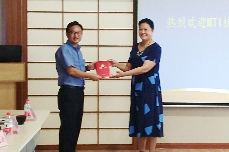 6月30日下午,beat365在雁山校区致远楼举行了MTI(翻译硕士)校企联合培养研讨会。学校副校长王玫教授出席会议。研究生院相关负责人、外国语学院党政负责人,来自东风柳州汽车有限公司、桂林康辉国际旅行社有限公司等翻译实践单位的校外导师参加了此次研讨会。