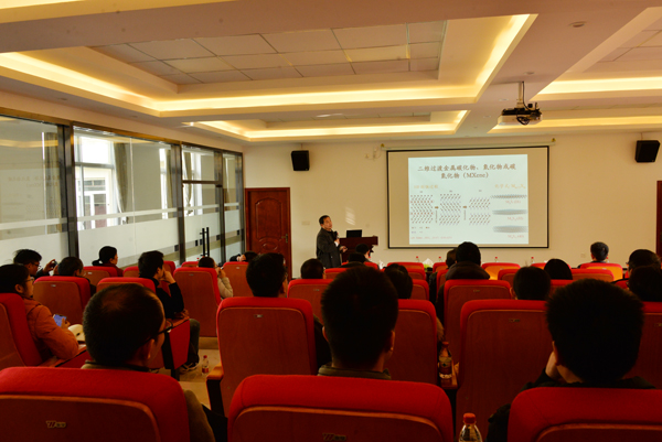 高义华教授作了题为“基于Mxene材料的力传感器与能源存储器研究”的学术报告。高教授介绍了二维层状材料MXene的制备方法及其性质和应用,重点介绍了所在团队利用MXene的特殊层状结构与优异的光电性能在微力传感器和能源储能器方面取得的系列研究成果。高教授还利用小木块在水中不同的漂浮状态诠释了阿基米德原理,与在场师生分享了自己科研过程中有感而发创作的诗词歌赋,鼓励同学们从科研中寻找乐趣,激发自己的创造力和想象力。