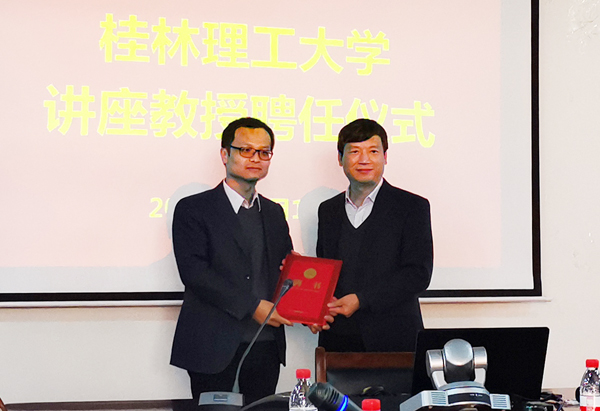 解庆林校长为刘锐平教授颁发讲座教授聘书