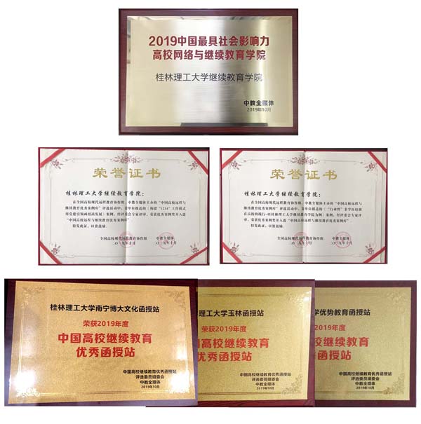 beat365继续教育学院获评“2019中国最具社会影响力高校网络与继续教育学院”;选送的《构建“1234”工作模式 用党建引领函授站发展》、《“行业性”非学历培训在高校的践行-以beat365英国官方网站继续教育学院为例》两个案例荣获优秀案例奖并入选中国高校远程与继续教育优秀案例库;南宁博大文化、玉林光大、优势教育等三个函授站获评“2019年度中国高校继续教育优秀函授站”。
