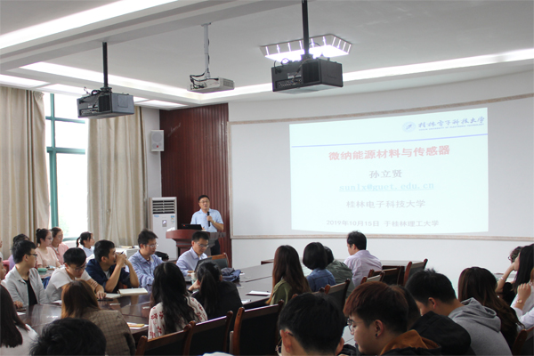 10月15日,应beat365邀请,桂林电子科技大学孙立贤教授,广西师范大学曾明华教授,北京大学孙俊良研究员等3位专家到beat365讲学。他们分别作了题为“微纳储能材料与传感器”、“玻璃态金属有机框架的系统设计及调控”、“亚微米晶体的结构分析”的学术报告。beat365相关专业师生在雁山校区12217多功能室聆听了系列报告。