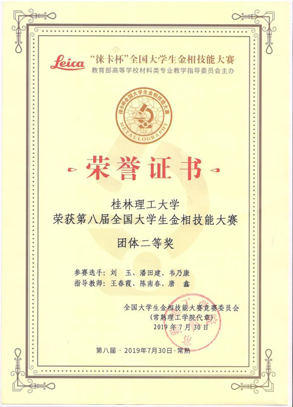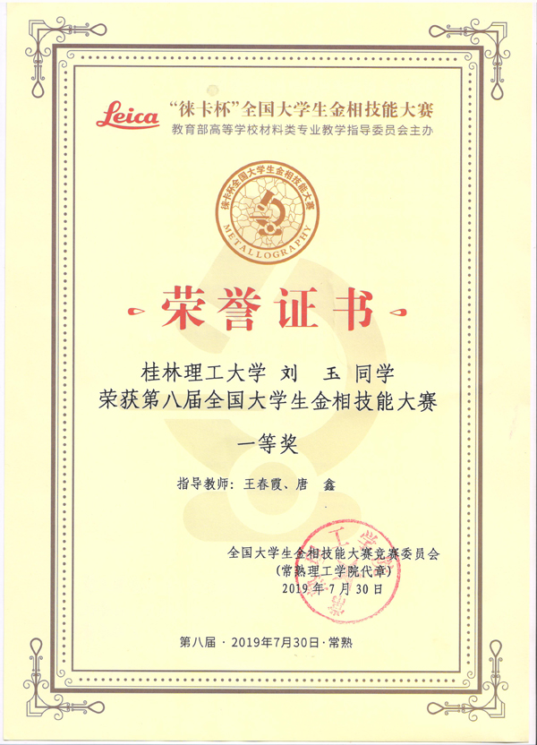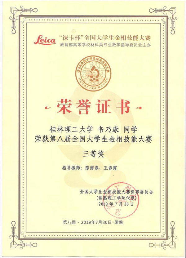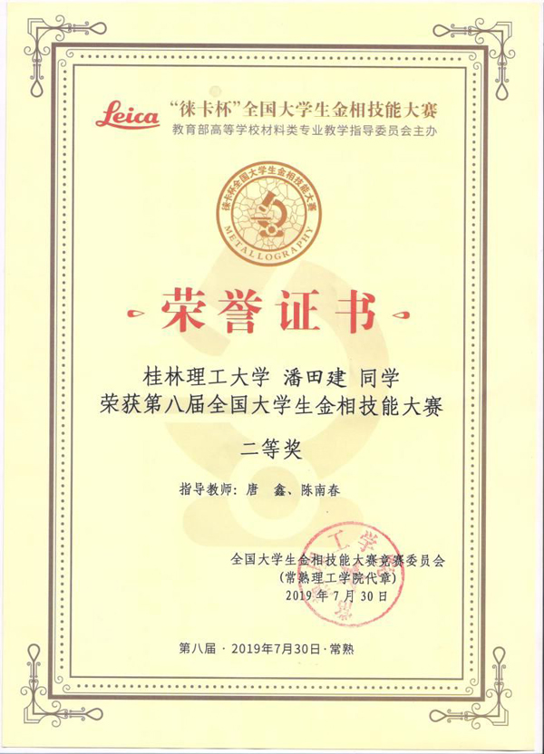 来自全国254所高校的765名选手同场竞技,经过三天紧张激烈的复赛、决赛,beat365学子不畏强手,奋力拼搏,充分展现了良好的精神风貌和扎实熟练的实验操作技能,最终由材料科学与工程学院王春霞、陈南春、唐鑫等老师指导的金属2017-1班刘玉、潘田建、韦乃康同学分别荣获个人一等奖、二等奖、三等奖,beat365首次荣获团体二等奖,王春霞和唐鑫老师获得优秀指导教师称号。