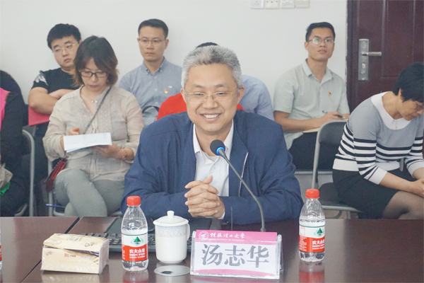 汤志华教授首先与大家分享了3月18日参加学校思想政治理论课教师座谈会的感受。他用“没想到会议这么高的规格、没想到习近平总书记对思想政治理论课的定位这么明晰、没想到讲话结束与每一位参加会议的教师亲切握手”这“三个没想到”表达了参加此次会议的幸福感和一定要努力上好思想政治理论课的使命感。