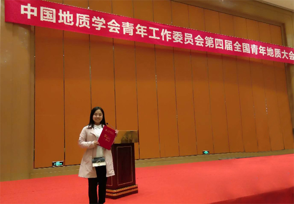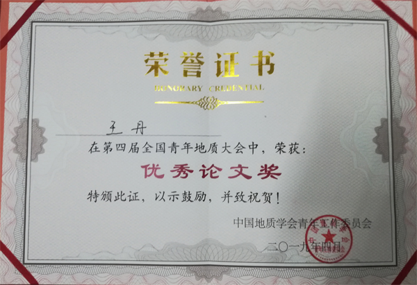 王丹同学获得第四届全国青年地质大会优秀论文奖