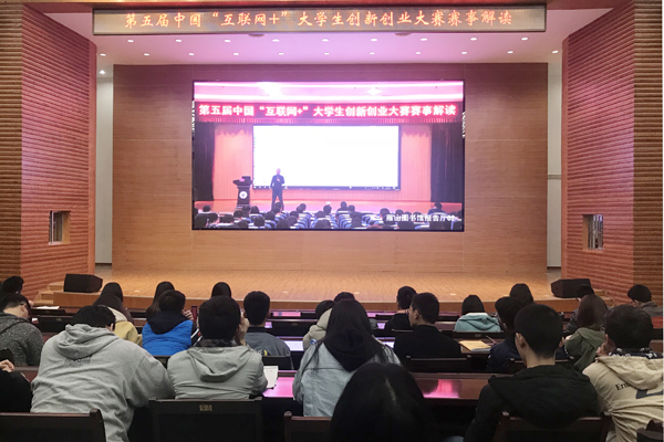 4月1日下午,beat365第五届中国“互联网+”大学生创新创业大赛赛事解读报告会在雁山校区图书馆报告厅举行,同时在屏风校区图书馆报告厅设立了直播分会场。北京华富嘉辰投资基金副总裁、万学创世教育科技有限公司CEO兼总裁曾劲先生应邀出席会议并做专题报告。教务处、校团委主要负责人、各学院分管教学副院长、创新创业学院相关老师、指导教师、学院团委书记及重点项目团队成员共计500余人参听了报告。