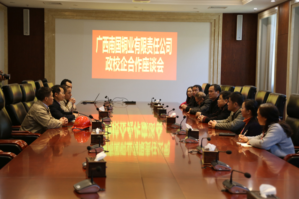 揭牌仪式后,三方人员召开了座谈会,并实地考察参观广西南国铜业熔炼生产车间。