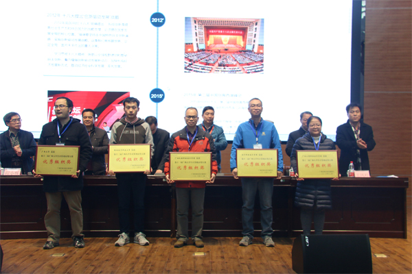 孙宁副书记代表学校在大会上致辞。他对教育厅和计算机基础教育专委会对本次大赛的大力支持表示感谢,对区内兄弟院校的教师代表的带来表示热烈欢迎,并预祝本次大会取得圆满成功。王国富副处长代表教育厅讲话,他对广西大学生计算机应用大赛激发学生学习计算机基础知识的热情,促进学生团队协作能力和综合素质的提高及在以赛促教、以赛促改、以赛促学等方面发挥的积极作用给予了充分肯定。同时,他希望广西高校计算机应用大赛形式多样化,内容更丰富,取得更好的竞赛成效。最后,他宣读了本次大赛获奖名单。会上,出席大会的领导为获得优秀组织奖和一等奖的单位及个人进行了颁奖。