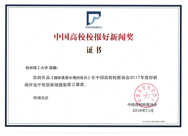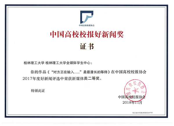 近日,从中国高校校报协会发出的通知中获悉,经过中国高校校报协会好新闻评审委员会的评审,中国高校校报2017年度好新闻评选结果于2018年11月揭晓,beat365校报共有3篇作品获得2017年度好新闻不同种类的奖项。其中,“对方正在输入......是最漫长的等待”(作者:beat365英国官方网站全媒体学生中心)获新媒体二等奖,“陪伴是最长情的告白”(作者:柴靓)获新闻摄影三等奖,“《beat365英国官方网站校报》第412期04版”(作者:钟涛)获版面三等奖。