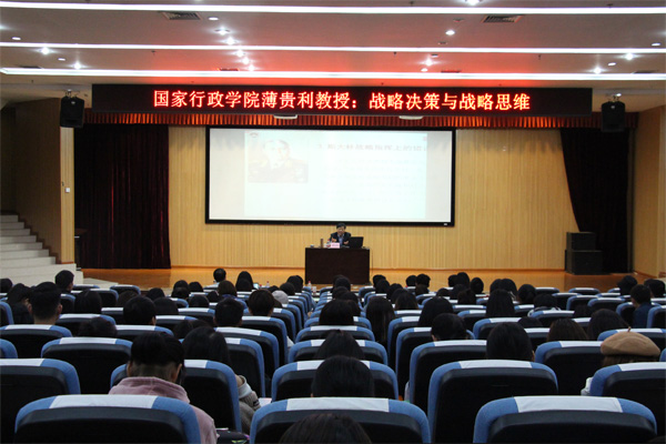11月30日上午,应公共管理与传媒学院邀请,国家行政学院一级教授薄贵利做客“桂工讲坛”,在雁山校区图书馆报告厅作了题为“战略决策与战略思维”的学术报告。