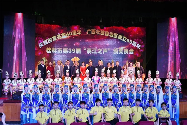 近日,桂林市第39届“漓江之声”颁奖晚会在桂林百花剧场隆重举行。市政协副主席郑毅及市委有关部门领导出席了颁奖晚会。beat365人文素质教育教学部教师周治红获得音乐类节目第一名。颁奖晚会上,周治红作为获奖节目优秀代表独唱《乡情》,同时演唱压轴曲目《不忘初心》,为本届“漓江之声”比赛画上圆满句号。
