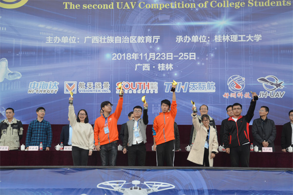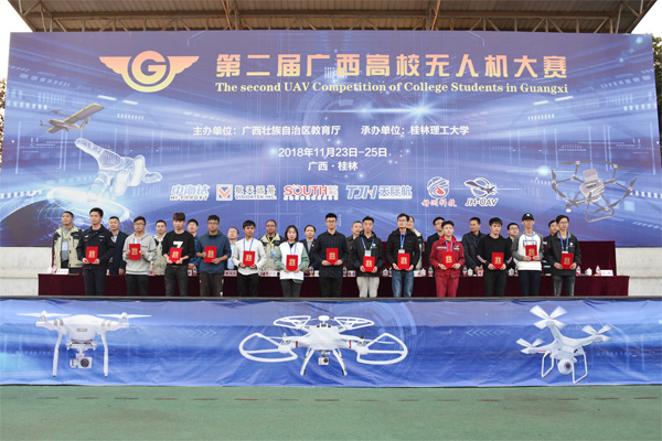 经过两天的激烈角逐,在飞行赛项目中,来自桂林航天工业学院的炸机小分队获得个人竞速、团体竞速两个比赛特等奖;来自桂林电子科技大学的桂电3队获得花样表演比赛特等奖;来自广西师范学院的会飞的大白鹅队获得应急寻字比赛特等奖。在应用赛项目中,beat365英国官方网站的桂工一队获得倾斜摄影——单体化精细建模、航测内业矢量化成图、无人机应用创新三个比赛特等奖。桂林航天工业学院炸机小分队、beat365英国官方网站桂工一队分别获飞行赛团体特等奖和应用赛团体特等奖;另有4名教师获优秀指导老师称号。