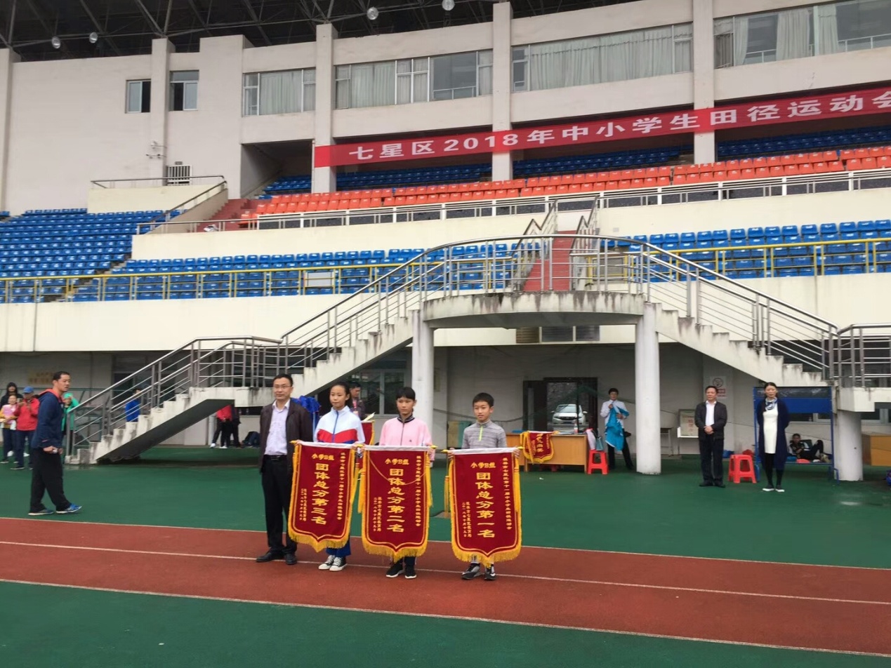 10月18至19日,七星区第十二届中小学生田径运动会在桂林市体育中心举行。beat365附属小学田径队克服困难、团结拼搏、战胜阴雨天气,夺得小学B组团体总分第一名的好成绩,这是beat365第三次蝉联这一项目团体桂冠。