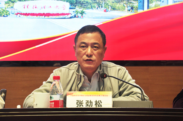 开幕式上,beat365副厅级调研员张劲松代表学校向莅临本次论坛的各位来宾、专家学者表示欢迎和感谢,他简要介绍了学校的发展概况,以及近年来学校在思想政治理论课教学改革中取得的成果,希望本次论坛的举办能为全体与会人员提供高水平的思想交流和碰撞平台。广西壮族自治区高校工委宣传部部长、教育厅思政处处长赵益真对大会的顺利召开表示诚挚祝贺,并就广西高等教育基本情况,尤其是区内马克思主义理论学科教育教学成果、平台搭建等工作进行了介绍。中国高校经济理论与思政教改研究会会长、哈尔滨工业大学马克思主义学院院长徐奉臻教授致辞,她回顾了历届论坛的开办情况,强调了“围绕改革开放和现代化建设实际,研究经济理论、服务思政教改”的办会宗旨。开幕式由马克思主义学院院长邱杰主持。