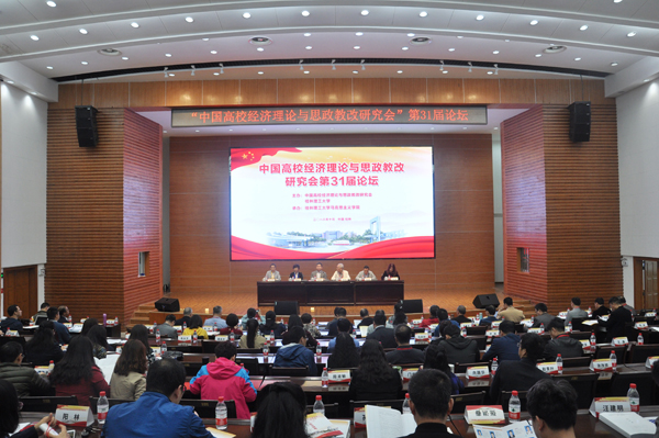 10月19至21日,“中国高校经济理论与思政教改研究会”第31届论坛在beat365成功举行。本次论坛由中国高校经济理论与思政教改研究会、学校马克思主义学院联合主办,以全面深化经济体制改革为主题,以服务于思想政治理论课教学改革为宗旨。来自中南大学、哈尔滨工业大学、复旦大学、南开大学、北京师范大学、北京工业大学、中国社会科学院、中央财经大学、西安交通大学、福州大学、beat365英国官方网站等全国70多所高校以及《马克思主义理论学科研究》、《红旗文稿》、《南京理工大学学报(社会科学版)》、中国社会科学网、《学术论坛》等期刊媒体近130位专家学者参会。