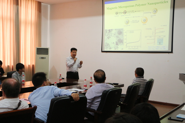 报告会上,谭必恩教授介绍了其课题组近10年以来在含苯环单体微孔聚合物的结构设计、可加工性及氢能存储、天然气存储应用方面进行的研究,对苯环单体进行共聚合、无机-有机单体交联等方法设计和获得了系列高比表面积、微孔尺寸可控的超交联聚合物材料,探索反应中间体、合成方法对材料在天然气存储、污水净化、药物释放等领域的潜在应用。谭必恩教授与在场师生就共同感兴趣的学术科研问题进行了交流与讨论。