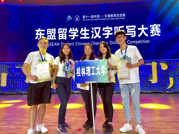 此次汉字听写大赛是以“教育合作新起点,人文交流新未来”为主题思想的第十一届中国—东盟教育交流周的主题活动之一。全国共有15所高校的60名留学生参加了此次大赛,他们分别来自越南、柬埔寨、马来西亚、老挝、印度尼西亚和韩国、哈萨克等东盟和“一带一路”沿线国家。经过激烈比拼,beat365留学生队凭借沉着冷静的发挥,出众的实力,一路过关斩将,最终摘得桂冠。带队老师李彩云获得优秀指导教师奖。