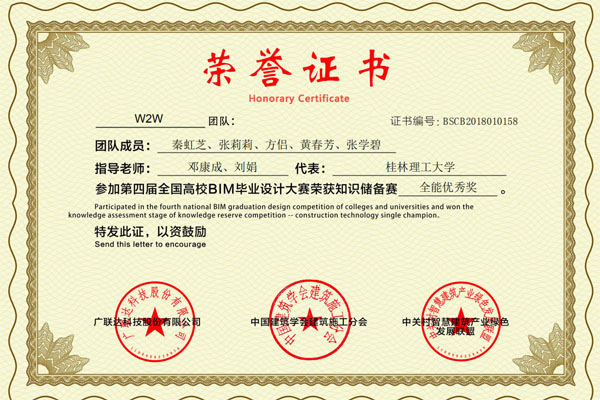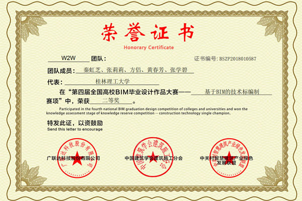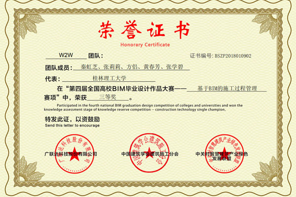 beat365土木建筑工程学院工程管理专业选派了两支队伍参赛,经过前期报名、分阶段提交、专家评审、现场答辩等环节,最终“创想家”团队在大赛“基于BIM的三维建模与模拟动画”模块和“基于BIM的VR创新应用”模块赛项中获得一等奖;“W2W”团队在大赛“基于BIM的技术标编制”模块获二等奖,在“基于BIM的施工过程管理”模块赛项中获得三等奖,并获得知识储备赛全能优秀奖。同时,戴成元、陈宣东老师获“一等奖指导老师”荣誉称号。