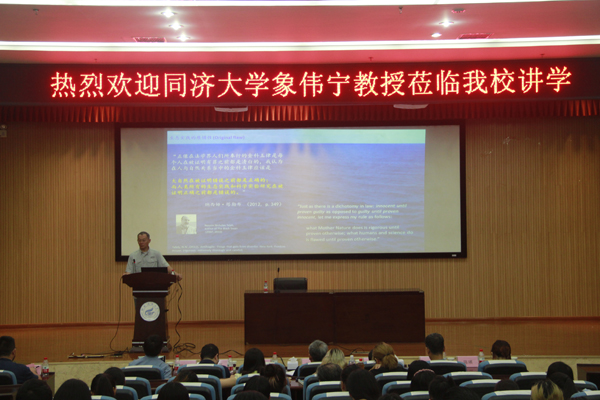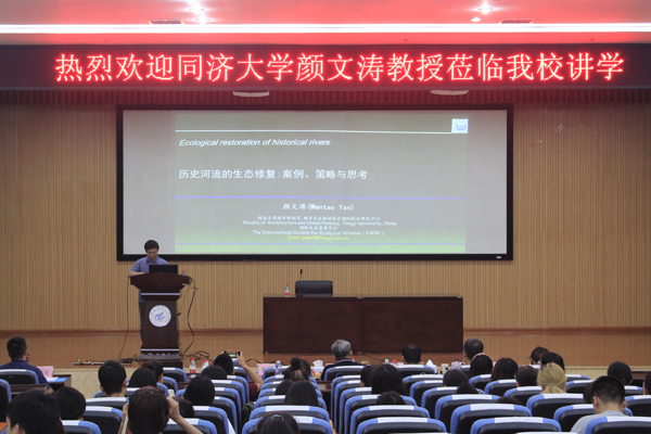 7月2日,同济大学建筑与城市规划学院象伟宁教授、王云才教授、颜文涛教授、美国辛辛那提大学规划系博导、原系主任王昕晧教授及南京林业大学风景园林学院汪辉教授应邀到beat365讲学。报告会在beat365英国官方网站雁山校区图书馆报告厅举行,旅游与风景园林学院及土木与建筑工程学院部分师生参加了此次报告会。