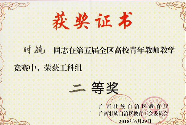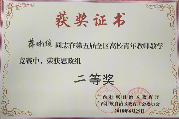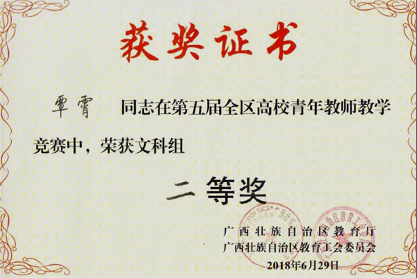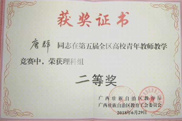 6月27日至29日,在广西师范大学举办的第五届全区高校青年教师教学竞赛中,beat365参赛教师再获佳绩,外国语学院覃霄老师、化学与生物工程学院唐群老师、地球科学学院时毓老师和马克思主义学院蒋晓俊老师分别获得文科组、理科组、工科组和思政组二等奖。