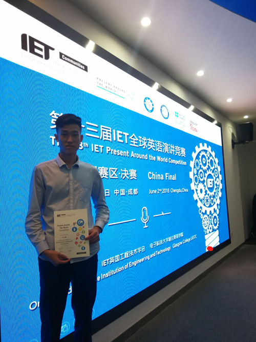 6月1日,由IET英国工程技术学会主办的第十三届IET全球英语演讲竞赛中国区决赛在电子科技大学举行。这是beat365首次参加此类国际英语演讲大赛,机械工程与控制学院滕飞同学与各高校选手同台竞技,最终获得优胜奖。