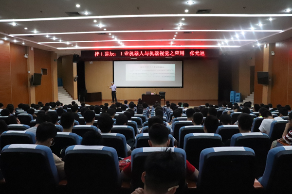 张光旭教授在讲座中结合自己多年的理论研究与教学经验,向同学们讲解了当今社会工业机器人与机器视觉的发展前景及机器人应用范围,结合自己在工业机器人与机器视觉应用方面的研究成果,向在场师生介绍了工业机器人未来发展的方向,强调在以智能制造为核心的工业4.0时代背景下,随着中国制造2025战略的深入,工业智能机器人产业市场将呈现爆炸式增长势头,其中充当工业机器人“火眼金睛”角色的机器视觉功不可没。