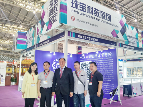 在学校展位与香港亚洲宝石学院及鉴定所有限公司院长莫伟基博士(中)一行合影