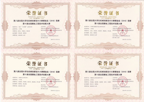 2018年4月20日-22日,第八届全国大学生机械创新设计大赛慧鱼组(2018)竞赛在浙江理工大学举行,beat365机械与控制工程学院学子首次组队参加本项竞赛,经过专家组的认真评审,beat3654个参赛代表队共获二等奖3项、三等奖1项: