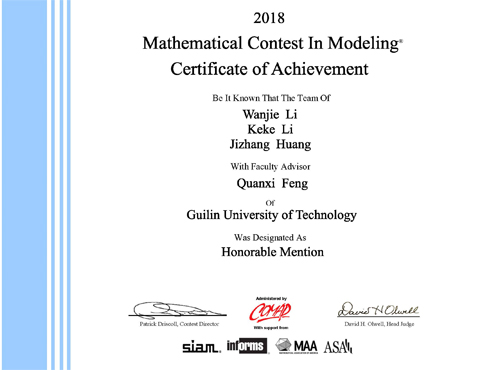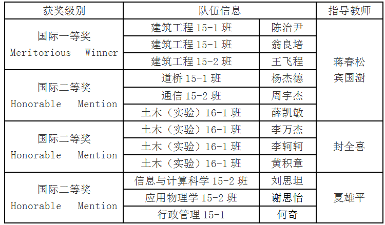 2018年美国大学生数学建模竞赛beat365获奖队伍信息如下: