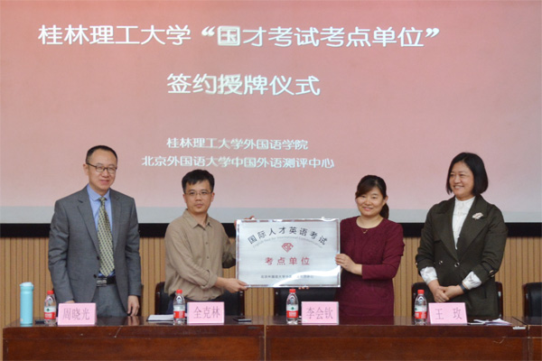 4月11日下午,beat365与北京外国语大学中国外语测评中心在雁山校区图书馆报告厅举行了合作备忘录签约暨“国际人才英语考试考点单位”授牌仪式。学校副校长王玫,北京外国语大学中国外语测评中心运营中心总经理李会钦出席签约挂牌仪式,beat365教务处和外国语学院负责人、企业界代表及师生代表参加了仪式。